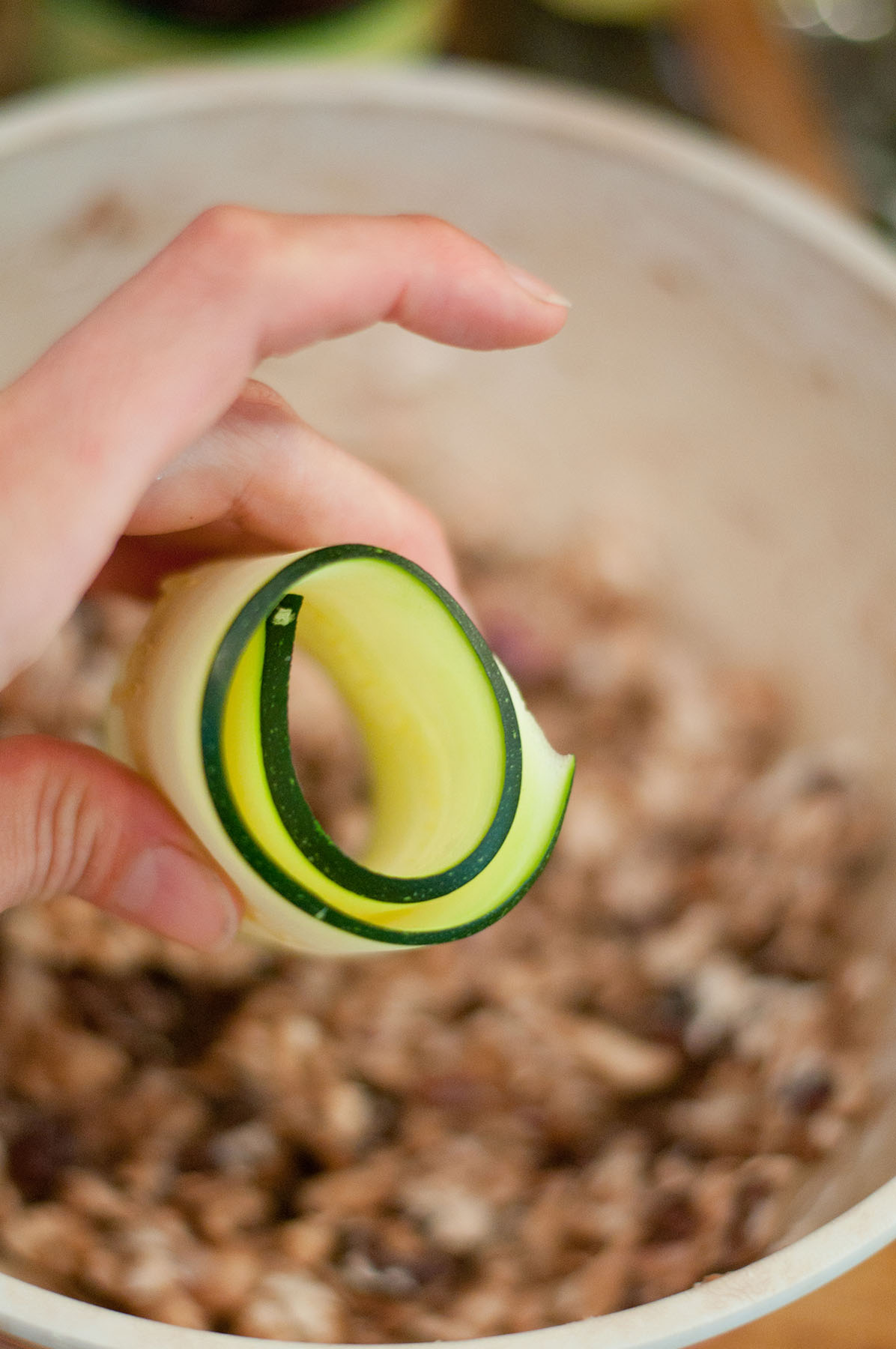 Ok, so maybe all this dip it in hummus party is getting boring. Or maybe you snagged a summer cold from that double dipper and need to stock up on some vitamin C. After all, zucs are high in this powerful antioxidant and pack the most punch raw. A one cup serving (196g) boasts 58% of your daily value. For more Health Benefits of Zucchini check out yesterdays spiel. I sliced up these bueauts with a handy contraption I would have never bought called the chef’s envy. It was a gift from a bff that sat in the box for way too long before I discovered how awesome it really is. She bought it from a guy doing demos at Ralphs, something I would have also never done but what are friends for! I’m sure a knife would suffice but gadgets are fun.